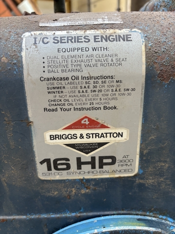 7,000kw generator. 16HP Briggs&Stratton. Fresh oil change, new battery, new spark plug, new airfilter and new fuel lines. Comes with an extra gas can.