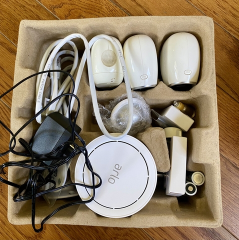 Selling this 3 camera Arlo set. We upgraded the quantity of our home security cameras so we no longer need these. Our neighbor uses these same cameras and already had a druggie arrested for stealing diesel fuel from his bulk tank.