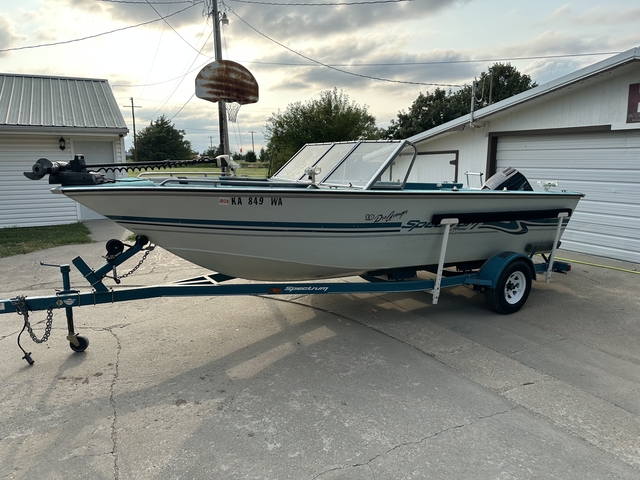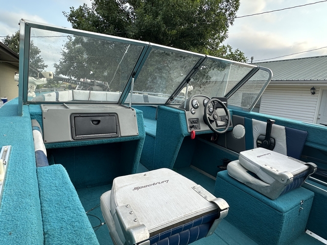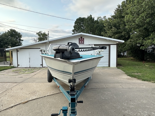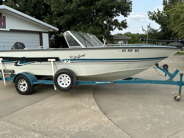 97 19ft Spectrum (tracker marine group). Boats fitted with a 120 hp force motor by mercury. Also had a minnkota trolling motor with Auto pilot, not spot lock. Boat floor is in good shape with no soft spots. The usual stain her or there but nothing major. Also has a pulling tower and bikini cover. The motor has had a new impeller this year and primer bulb and fuel line. Carb kit 2 years ago. Live well and lots of storage. Will come with a helix 5 with chart plot and down imaging and all lakes in Kansas. Trailer is a spectrum 19ft trailer with hydraulic brakes. Tires where new in 23. Boats a good solid unit for its age, and a very deep v for these local Kansas lakes. Would trust it anywhere I've pulled it to lake Texhoma fishing before. Call or text 785-534-7242
