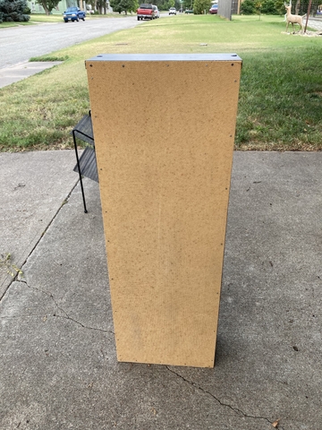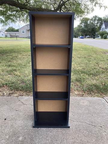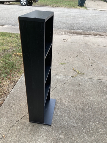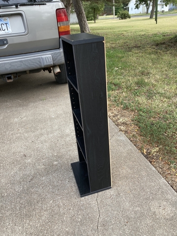Small shelf. 3 of the shelves are adjustable. It measures. 36"H x 12 1/2"W x 5 3/4" deep