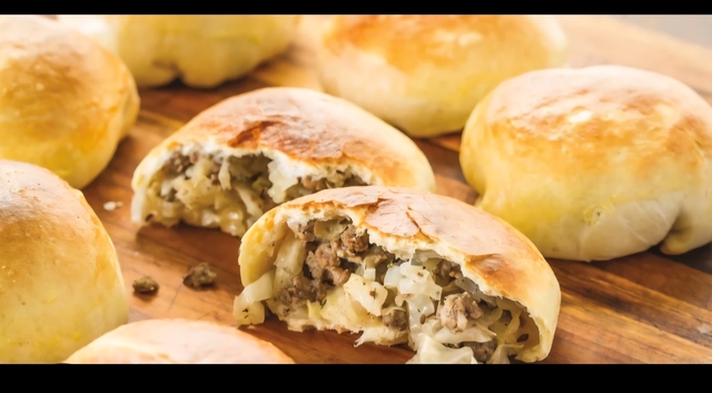 BIEROCKS Stuffed with seasoned beef & cabbage 🧀 Cheese available upon request