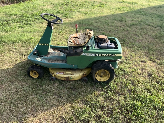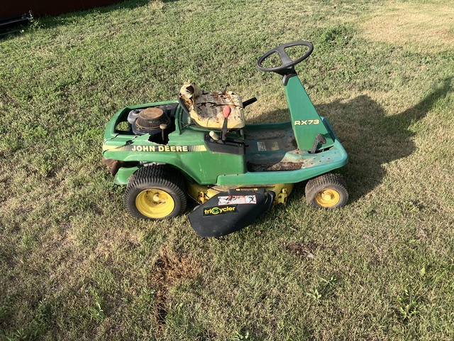 John Deere RX73 lawn mower, got it from a neighbor don't know much about it but I do know the engine had/has water in it and is stuck. If my research is correct it is a Kawasaki FC290V engine. Shoot me an offer open to trades