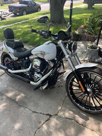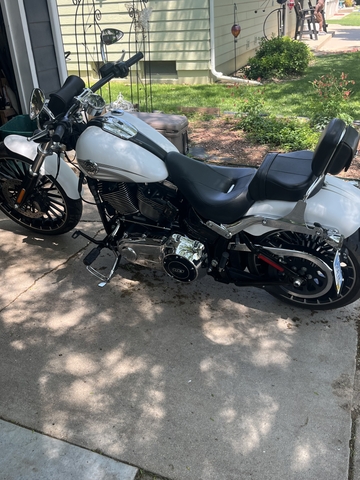I have a 2017 Harley break out with only 11,000 miles. Crushed ice denim color. 240mm rear tire. I pulled the baffles out so it was louder but still have them and can be put back in. Just trying to get what I owe have only had it a short time and got in over my head. Looks good runs great.