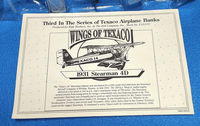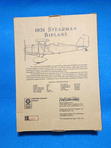 VINTAGE Ertl Diecast 1931 Stearman Biplane Wings of Texaco #3 IN SERIES 1995. NEW IN BOX 1995- #3 in Series. LIMITED EDITION