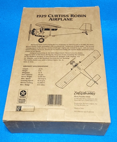 VINTAGE Ertl Diecast 1929 CURTIS ROBIN Wings of Texaco #6 IN SERIES 1998. NEW IN BOX 1998- #6 in Series. LIMITED EDITION