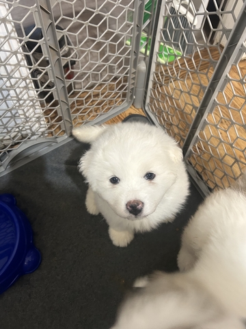 One female puppy left. She is the all white one posted in the photo. We have a toddler she is great with him so would be a great family addition with kids. Shots are up to date and she is 10 weeks old. Birth date was June 12.