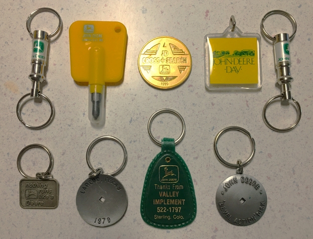 JOHN DEERE MISC. KEY CHAINS & COIN ($1.00 EACH)