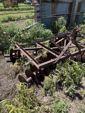 6 ft, 3 pt, Dearborn Disk, CAT 1 hookup, Back left gang needs 1 disk and shaft straightened.