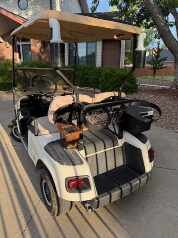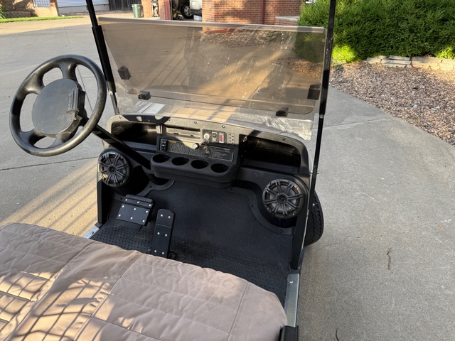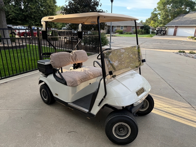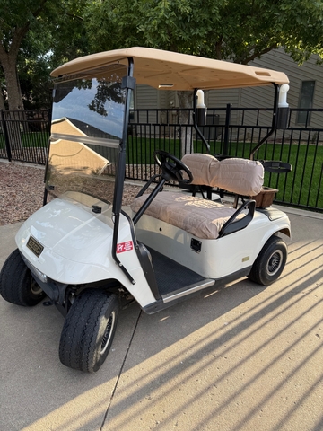 Comes with Charger, seat covers over the seats to protect them, Golf Cart Soft Cover for Rain/Weather, Seat Blanket, ball washer, and cooler. Windshield is new!