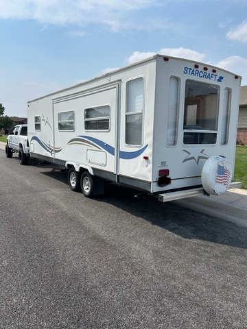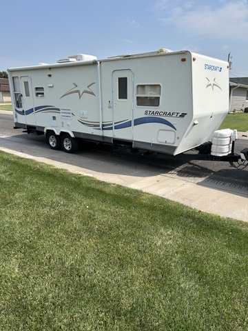 2002 StarCraft camper 29'. Some bubbling on slide side in rear from a small leak. I took the corner off and poured epoxy behind panel to strengthen the plywood, it helped glue it back on at the top a lot better I still may try it again around the lights. I replaced 2 small pieces on the inside where the wall paper was coming loose, the insulation still looked good. Have silicone every edge, around doors and windows and roof edges. Used at State fair for a week and no issues. New tires a year ago.Everything works as it should. Have owned it for 5 years. The only reason I'm selling is to go to a bunk house. Title in hand. Six two zero 786-5840