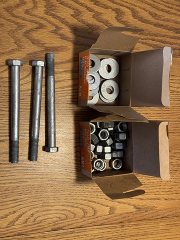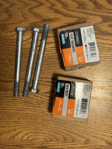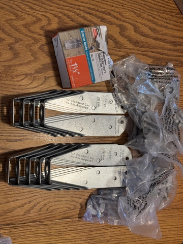These are brand new. Mounting galvanized screws and washers are included. Box of washers included. 3 bolts are included (6” long). Excellent for bracing deck railing posts.