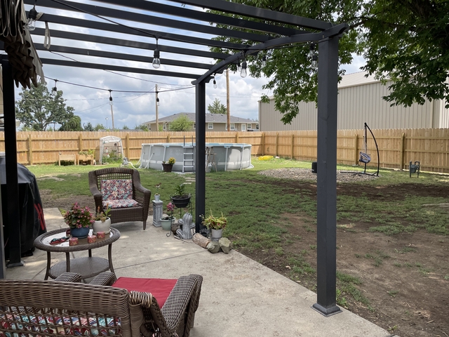 The fenced backyard is perfect for entertaining, featuring a new wooden fence, pergola, and a refreshing pool. Located just steps from an elementary school and within walking distance to both junior high and high schools.