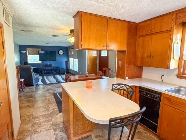 Welcome to this charming and well-maintained 1.5-story brick home, offering the perfect blend of comfort and convenience. Step inside to a thoughtfully designed open floor plan that seamlessly connects the living room, dining area, and kitchen. The kitchen with appliances to remain is conveniently located near the laundry area (washer and dryer included), making multitasking a breeze. The main level features a comfortable bedroom with patio access, a full bathroom, and a flexible den or home office that is perfect for remote work, hobbies, or an extra guest space. Upstairs, you'll find a spacious second bedroom with two generous closets, providing ample storage and privacy. Enjoy year-round comfort with updated central heating and air conditioning. The attached single-car garage offers additional storage space, while the expansive backyard is perfect for outdoor activities and gatherings. The covered patio is a true highlight, a great space to relax or entertain.