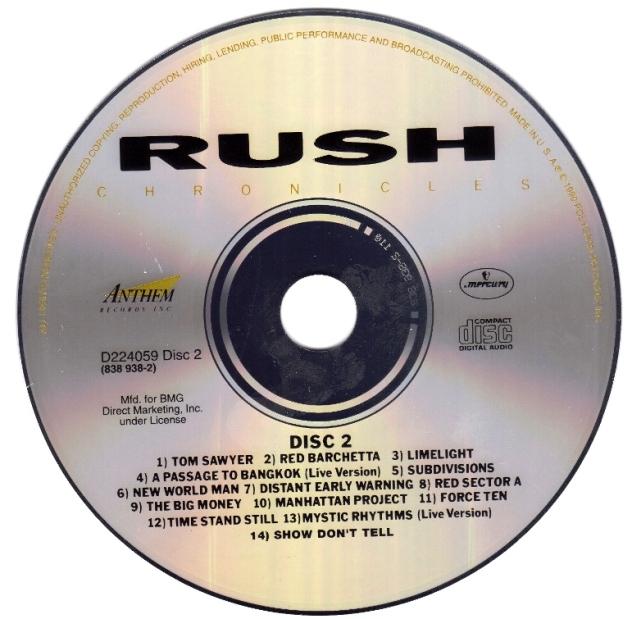 RUSH Chronicles $17.00 30 tracks of the Best of RUSH and all their Greatest Hits. SOLD The RUSH CD (not available for sale)