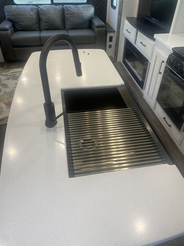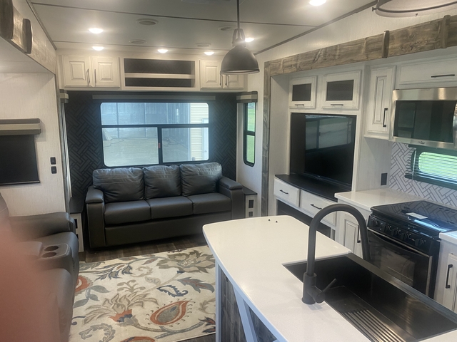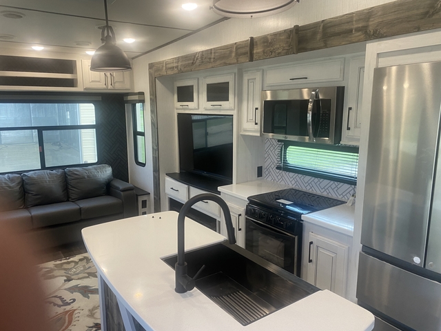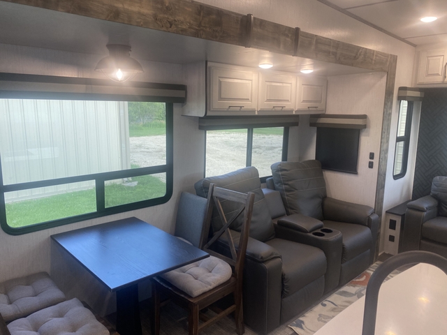 Very clean rv with 3 slide outs. OEM tires have replaced with premium tires. Less than 5000 miles on tires. Dual AC and electric fireplace.