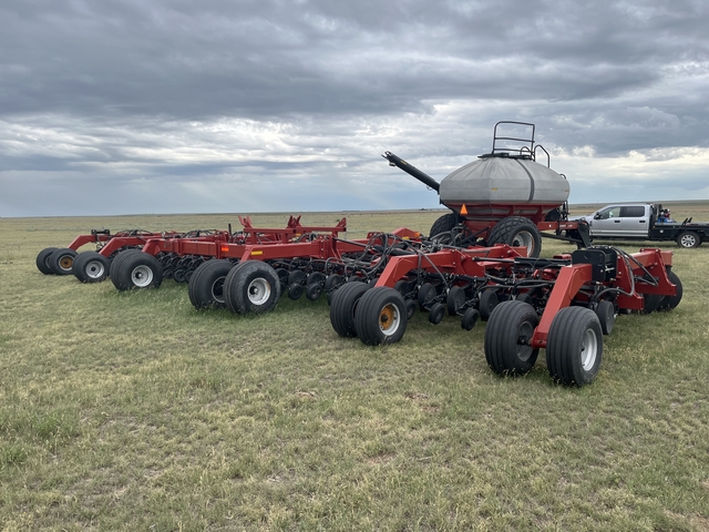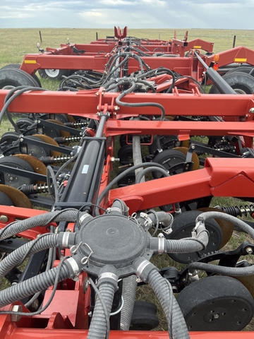 50 foot, 10 inch spacing air disc drill with 2330 air cart. Recently replaced discs and scrapers on this one owner, low acre, well maintained drill. Field ready.