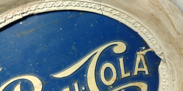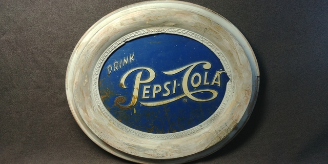 1950s Drink Pepsi Cola Embossed Sign in Frame