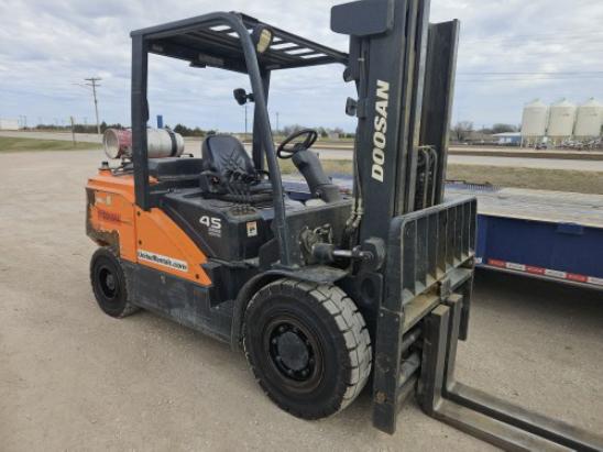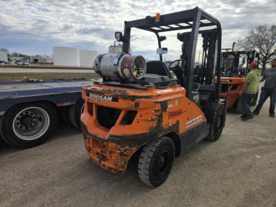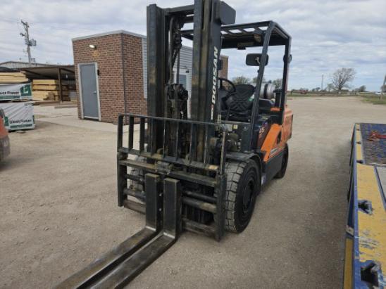 - 2022 Doosan 10,000lb Pneumatic Warehouse Forklift