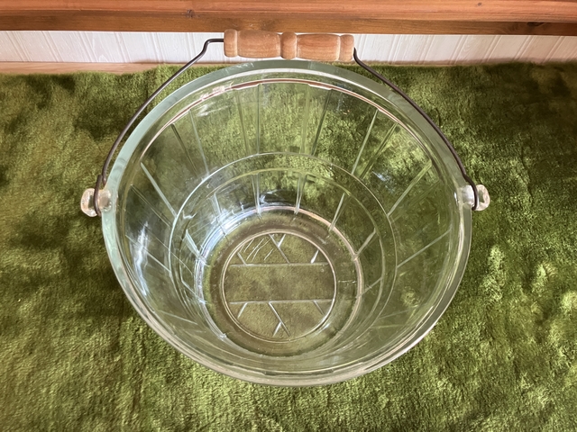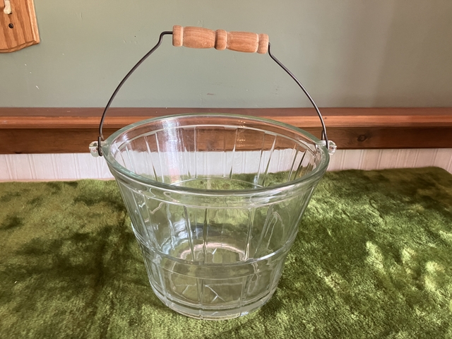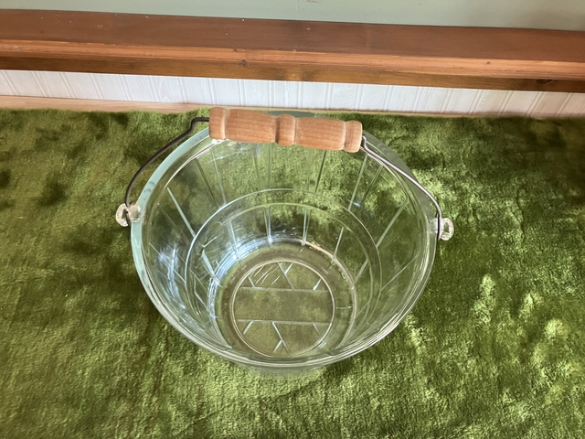Anchor Hocking Glass Ice Bucket Pail with Wood Handle 60's Vintage.