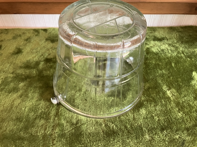 This vintage Anchor Hocking glass ice bucket pail with a wood handle is a charming piece of barware from the 1960s. Made in the United States, this original item features a sturdy glass construction with a convenient handle for easy carrying. Perfect for keeping drinks cool and adding a touch of retro style to any kitchen or home decor.