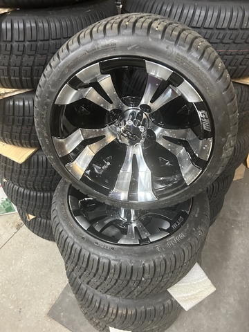 12' ALL BLACK SPOKE WHEEL W/255/55-12 TIRES. REQUIRES LIFT-$525.00