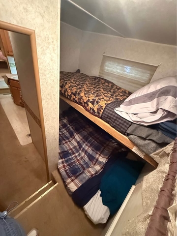 32' 5th Wheel Camper with bunk house. Comfortably sleeps 5-6. Queen bed in the master bedroom, bunk beds in the rear and the sofa folds down to a bed. One slide out, manual awning, one air conditioner, gas water heater, gas/electric refrigerator, loads of storage. New tires put on camper this Spring. Great camper!! Message for more details or pictures. $11,000 OBO