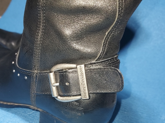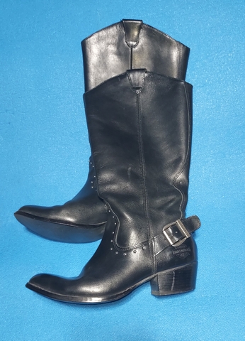 This is for a pair of HARLEY DAVIDSON Womens 7.5 Leather Boots Knee High Studded Motorcycle Zip D85418. THEY ARE SURE TO BE AN EYE-CATCHER AT YOUR NEXT MOTORCYCLE RIDE, BAR-B-QUE, RODEO OR THE DANCE FLOOR. QUALITY MADE BOOTS WITH DOUBLE STICTHING AT ALL THE STRESS POINTS, STURDY 1 3/4" HEELS AND 15" SHAFT. THESE ARE STYLISH WITH THE STUD FEATURES AND ZIP SIDE.