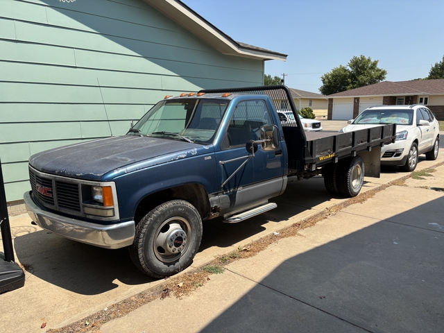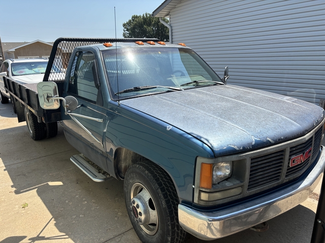 1992 gmc 3500 1 ton dually. 8' x 12' winkle steel flat bed w/electric over hydraulic hoist ,strong, works good. Not the prettiest , but solid strong truck . 5 speed manual transmission. No broken glass no dents one rust spot. Call 785-259--5876 retired don't need it any more. Obo