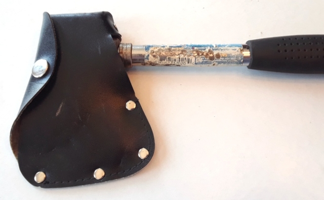13” Steel Camping Axe/Hatchet- $12.00 Selling a Coleman 13” multi-purpose steel camp axe/hatchet. The compact, lightweight and portable design with the leather blade cover makes this axe ideal to pack for hiking, backpacking, camping, splitting firewood, chopping branches and other camping tasks. The blade is 4” drop forged carbon steel head with a protective cover. Forged steel handle with an ergonomic, non slip secure grip design. Keep this in your emergency kit and use the hammer end for a variety of jobs from pounding in tent stakes to hammering nails or spikes.