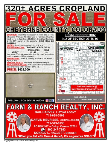 320± ACRES CROPLAND - CHEYENNE COUNTY, COLORADO