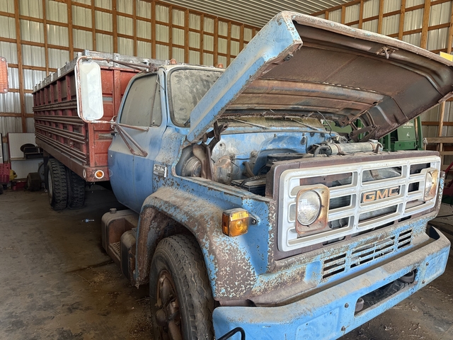 75 gmc 6500 366 4spd 2 spd 18 ft bed and hoist 6,000
