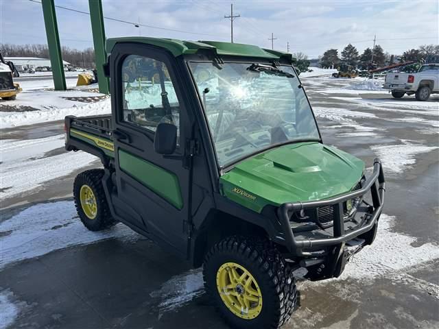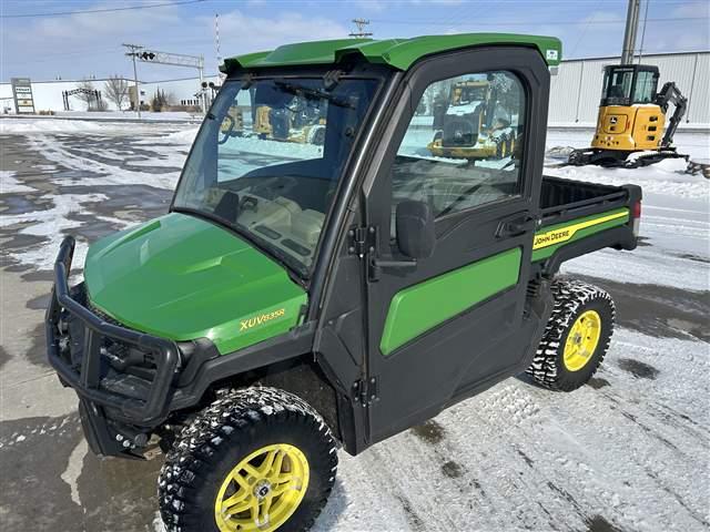 2023 John Deere 835R Gator, 54HP(812CC) EFI Gas Engine, 4WD, Cab w/HVAC, Alloy Wheels, Hard Surface 8 Ply Tires, Power Steering, Side Mirrors, Inside Rear View Mirror, Sun Visors, Dome Light, Power Cargo Box Lift, Windshield Wiper & Washer, Tilt Steering, Spray In Bedliner, Front Brush Guard. Air Filter Snorkel. Stock #U32922.