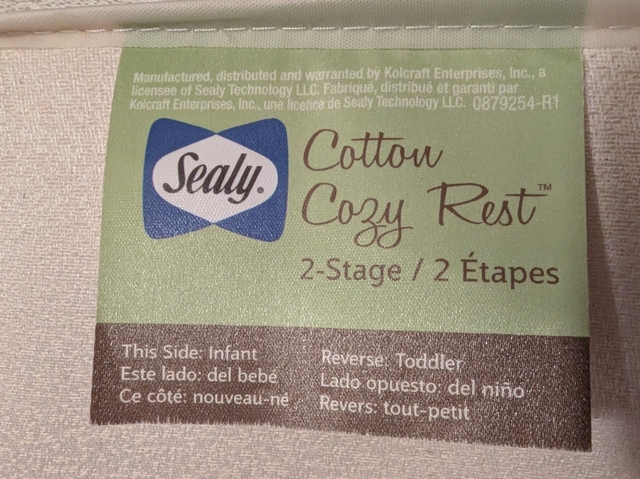 Luxurious cotton cover with 2 stages of firmness for infant and toddlers. Cotton cover is both waterproof and stain-resistant. Excellent, new condition. From smoke/pet free home. $50.00