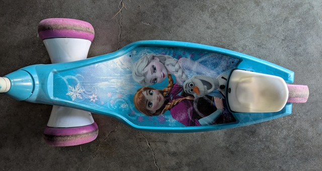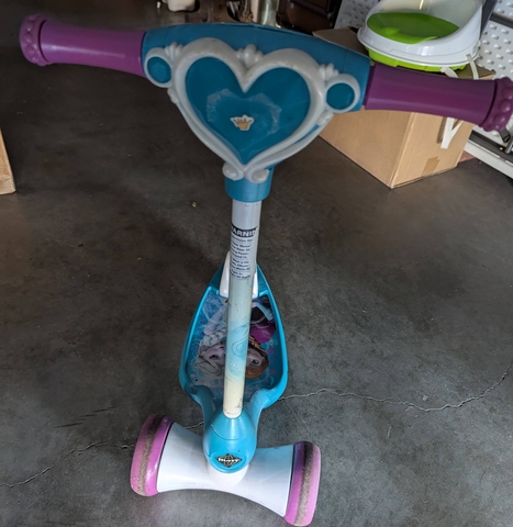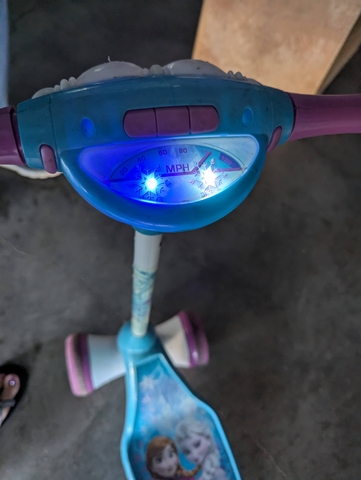 Lights up and has some Frozen movie phrases. Plastic with brake. $29.99 new. Asking $8.00. Smoke/pet free home.
