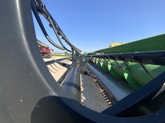 2001 John Deere 930F flex header, 30’, fore/aft, new poly, full finger drum, S/N: H00930F691757Transportation & Financing Available