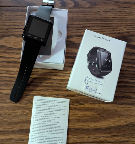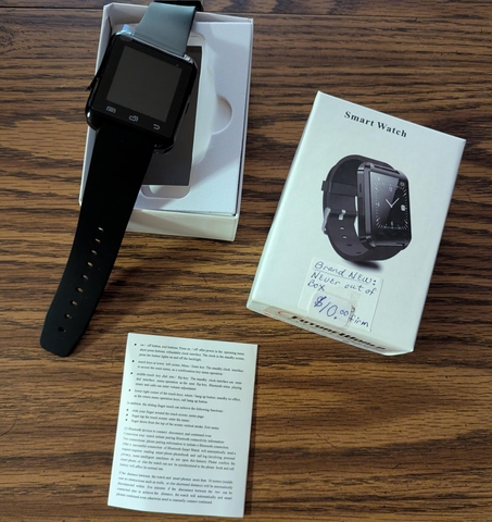Futureworld electronics black Smart Watch w/instructons. Brand new; never out of box. $10.00. Smoke/pet free home.