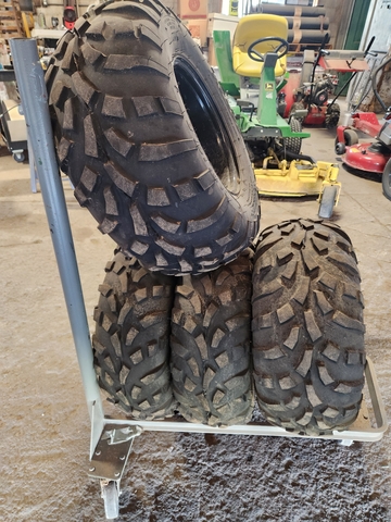 2 25x11x12 tires and wheels and 2 25x10x12 tires and wheels off of a Polaris utv.
