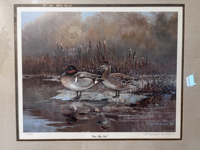 Nice selection of limited edition prints by Wichita wildlife artist M.Wayne Willis. All prints are from 1989 and number 230 of 860. Framed size is 26 inches wide by 23 tall. Frames and matting all match. $500 OBO for the set-will not split up. More pictures available upon request-only allowed to post 6 pics on this site. West Wichita Kansas pickup.