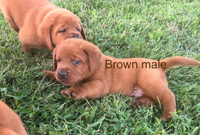 These 5 week old puppies are from Sadie and Roscoe. The parents have been genetically tested, have OFAs on hips, elbows and eyes. Please contact us for more information. Call 785-547-7990.