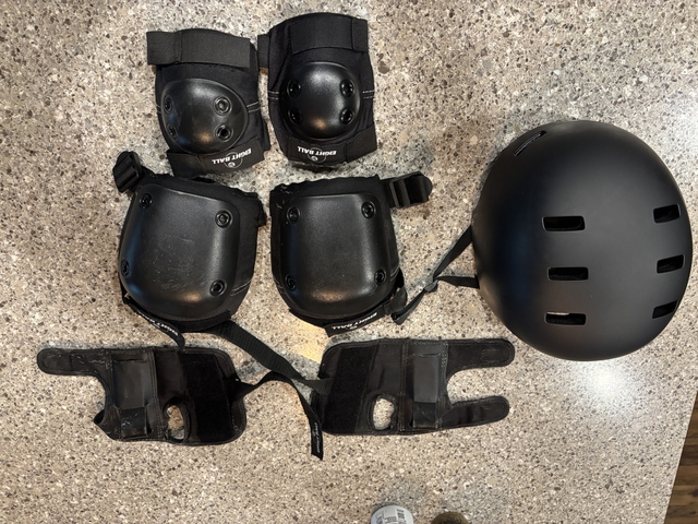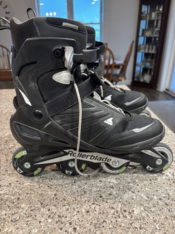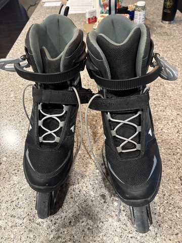 Skates were purchased from Dick's Sporting Goods. They are used and are in excellent condition. Included are 8 brand new wheel bearings, a Bell helmet, a full set of pads for elbows and knees, wrist protectors, and Allen wrenches for the wheels.