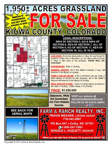 1,950± ACRES GRASSLAND - KIOWA COUNTY, COLORADO