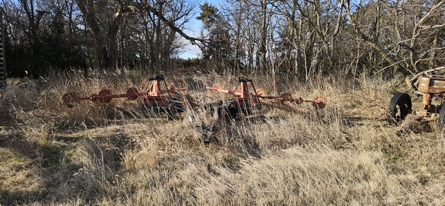 Older drawbar pull style. 10 wheel. Walton brand i belive. V style carted pulls two windrows together. Hydraulic lift on wings. Newer tires. Ugraded to higher capacity unit. Used behind 14' and 16' swathers. Trades considered, call or text nick seven 85-346-4057 pics to come