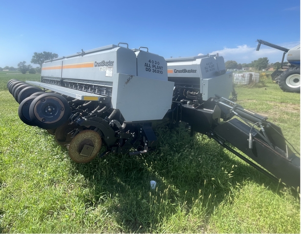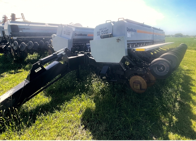 FOR SALE IS A USED 2005 CRUSTBUSTER 4030 ALL PLANT GRAIN DRILL. SOME OF THE FEATURES INCLUDE 10" ROW SPACING DOUBLE DISC SPRING LOADED DOWN PRESSURE OPENERS WITH 3 X 14V CROWN PRESS WHEELS. THE OPENER DISC BLADES MEASURE ABOUT 15" AND INCLUDES DRY FERTILIZER BOXES. THE DRILL ONLY HAS 1100 ACRES OF USE. THIS DRILL IS IN GOOD CONDITION.