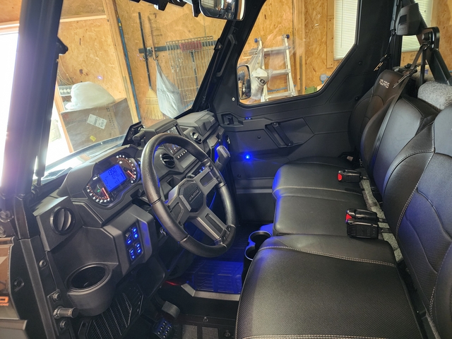 Front and rear turn signals, side view mirrors, horn, $600, Polaris sun visors 2890288 $160, Polaris rear bumper 2884217 $500, Rigid Pro Series LED cube lights for rear bumper 2883126 $230, Polaris light bar harness 2883230 $120, Rigid SR 10 inch front light bar combo flood/spot 2883122 $340, Polaris pulse LED light bar harness 2883230 $120 , rear LED work light 2889672 $250, and reverse wiring harness 2889679 $150, upper switch panel 2889674 $85, upper switch panel wiring harness 2889675 $120, All wiring harnesses are Polaris brand. Almost $3000 in extras.