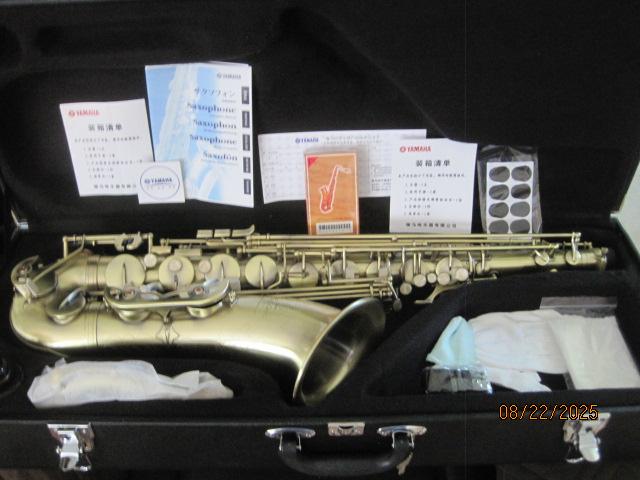 A brand new Yamaha 875 Custom EX tenor sax. Finished in an antique brass w/clear epoxy. Has all Yamaha branded paperwork, warranty card, case, and logos. I have test played it, and didn't need any additional adjusments, so the horn is air tight and all regulation looks proper. You will probably want to pick up some decent reeds and maybe a couple extra generic mouthpieces in case you need to hit hi-F# and G. I was a Coast Guard band repairman in NYC, and have worked on most brands.