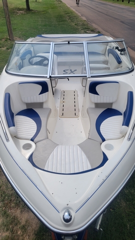 This is a very nice boat. It has a couple minor scuffs and scratches and the motor has less than 100 hrs. It has a 4.3l Volvo. Also has a bimini and a new swim platform. Very fun and sporty boat. Also comes with a spare tire.