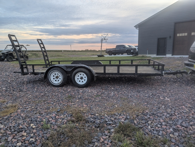 Have too many trailers, doesn't get used much. Fastline 16ft dual axle trailer, bulldog jack, 2in ball, and adjustable drive on ramps.
