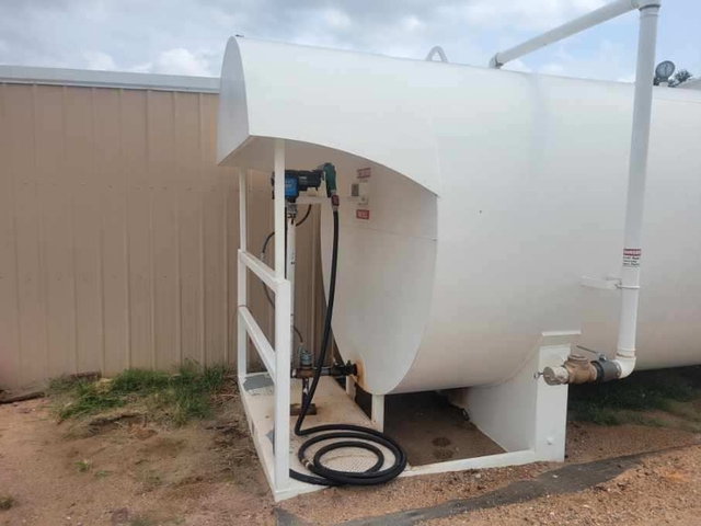8000 gallon double wall fuel tank complete with all plumbing, valves, pump, hose, nozzle, meter, fuel level guage. Buyer will be responsible for all loading and transportation.
