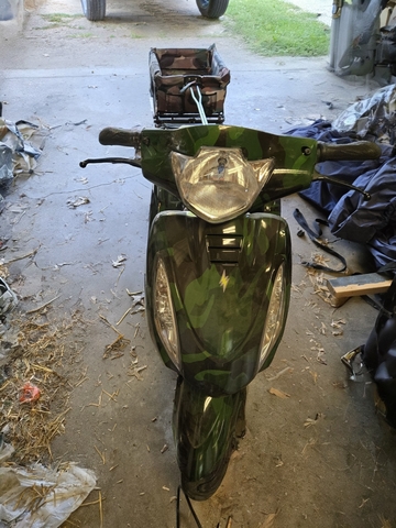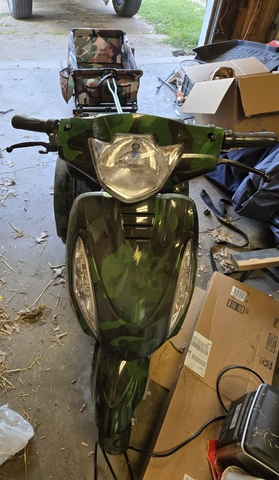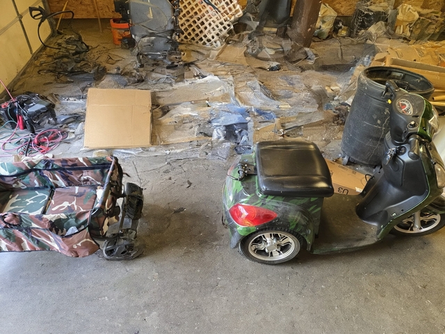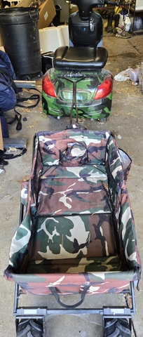 Electric Camouflage Trike with matching pull behind wagon. Brand new battery last year. Comes with charger. Everything works fine..blinkers, headlights with high and low beams, horn, back up signal..has small storage area under seat..works great, I just didn't use it as much as I thought I would.
