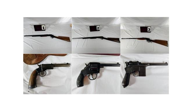 Firearms and Related Items: - Stevens 22, Visible Loading Repeating Rifle, Pump SN780 - Marlin Model 1892, 32 Cal?, Lever Action, Octagon Barrel Sn 85650 - Savage Arms Model 24, 410/22LR Over & Under SN Unknown - Marlin Model 1893, 34-40, Lever Action SN112786 - Stevens Marksman 22 LR SS, SN 232 - Spencer 50Cal, Pt 1860, Rare Emblem on Stock, Rolling Block, SN5551 - Sharps & Hawkins 50 Cal. Pat 1859, SN2466 - Remington 1888 Roling Block - Sharps Pat 1852, SN46008 - Ballard 38Cal Long Colt, Octagon, SN 7583 - Winchester Model 59, Semi Auto 12 Ga. 2 3/4, Sn 32418 - Hopkins & Allen SS Trap Door 12Ga, SN 9572 - Winchester 1897 12 Ga, Pump, (White Gun) SN 232682 - Winchester Model 12, 12Ga, Pump, 2 3/4in SN 871444 – 879916 - J Stevens Walnut Hill 22 LR, Breech Loader, SN2554 - FR. Schafhausen, Hilbefheim JGA 6MM, Flob SS Riffel, SN 354822 - Winchester Model 94, 30-30, Lever Action, SN 4910535 W/Box - Hpiper Flobert Belgium, 22 Ca. Rifle, lSN 322 - Ithica Model 500 20 Ga,, 3in, Over and Under SN S6504539 - Marlin Model 97, 22Cal, Lever Action SN301210 - Springfield Model 1878 Trapdoor 45-70, SN 242896 - Remington Target Master, 22 S,L, LR, Bolt Action, SN -Unknown - Lee Enfield No. Mark 4, 22cal Training Rifle, SN 806 - Norinco SKS, 760X39, SN C21001912 - Thompson Center 45 Cal., Black Powder, SN16978 - Sargent Muzzle Loader, SN -Unknown - Laminated Stee Barrel, Dbl Barrel - J Stevens 22 Cal Break Action Pistol W/ Holster - H&R Victor 38 Cal Revolver Pistol, SN 56378 - Remington Army 1858 Revolver, 44 Cal., SN - Euroarms Army Replica, W/Holster - A&AS Solinger German Pin Fire Revolver - FMJ Cobray 45 Cal Deringer Less Breech Face - Intratec TEC 22 Scorpion, 082624 - Broom Handle Mauser Pistol SN 201446 - Madison Imperial Company 1779, Flintlock - Jukar Percussion Cap Black Powder SN 0012327 - Myersburg & Stamm German Sword - Possible Bag W/Items for Muzzle Loader & Thompson Center 45 Cal and Other Misc. Items.